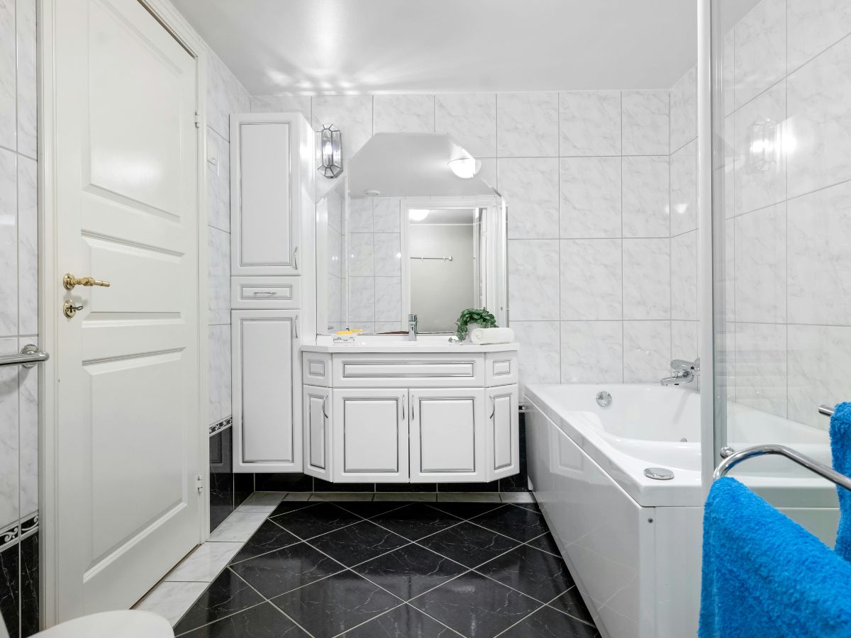 If you have a long, narrow bathroom, a wall-mounted or floating vanity helps create an open feel while still offering storage. In more spacious bathrooms, a double-sink vanity can be a luxurious choice, especially for couples or families. Corner vanities are also ideal for small spaces where every centimetre counts.