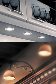General or ambient lighting brightens the whole room making every area visible. Accent of decorative lights are used to create a dramatic mood in the kitchen.